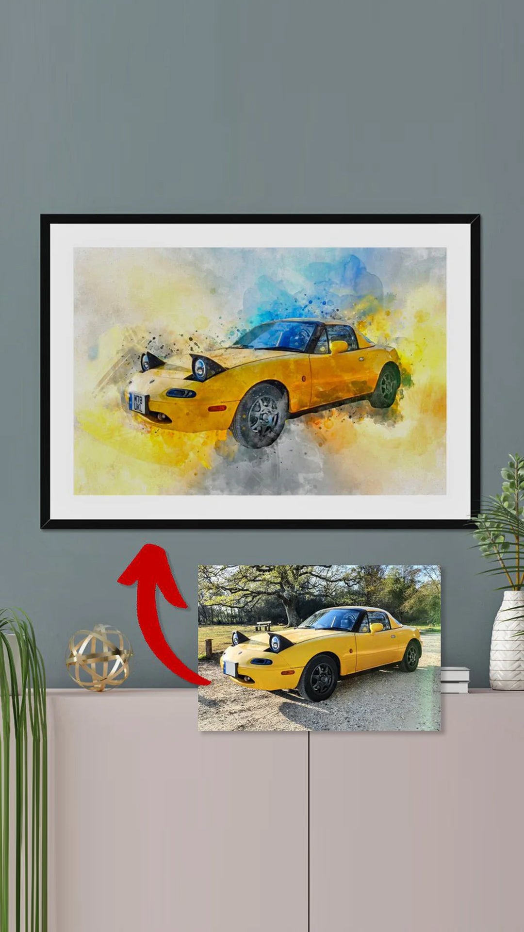 The perfect gift for car lovers! Commission any photograph of a car to be turned into a stunning, hand-created watercolour effect art print, delivered straight to your door!