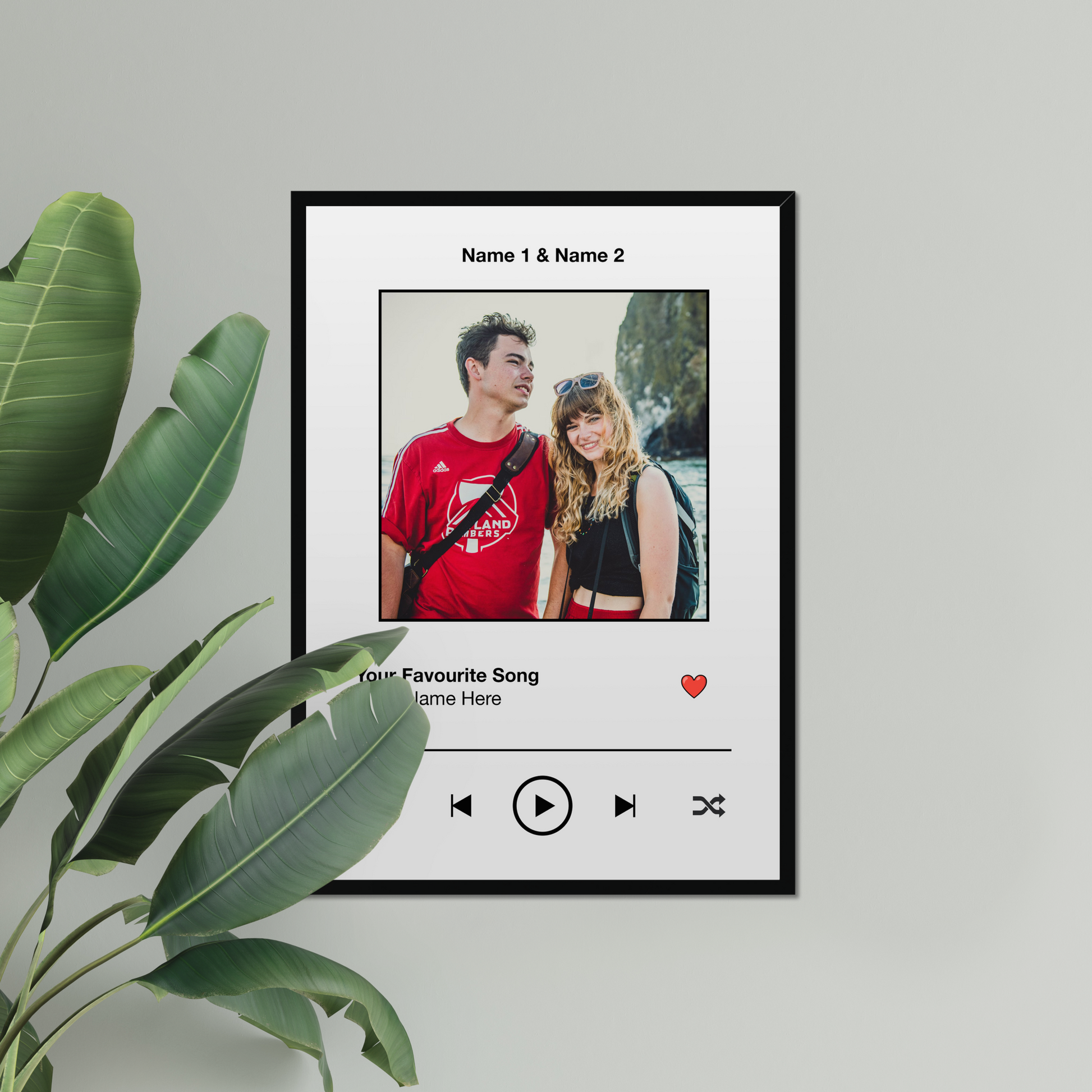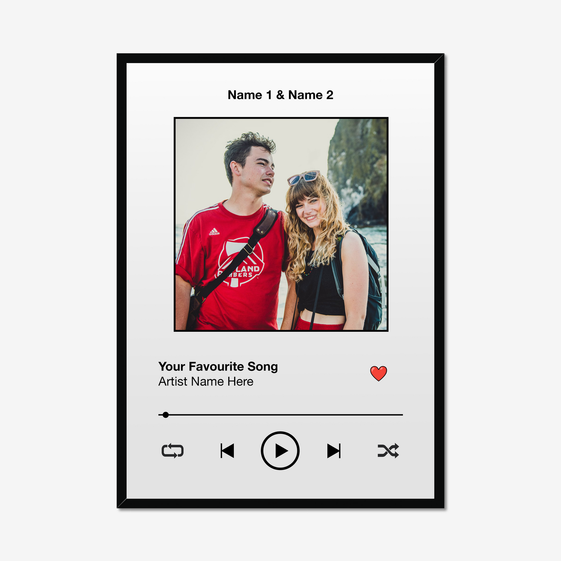 Please leave your text in the personalisation box for both the top section and the song title and artist name. The top section can be any message and does not have to be the names of the couple. Be as creative as you wish!